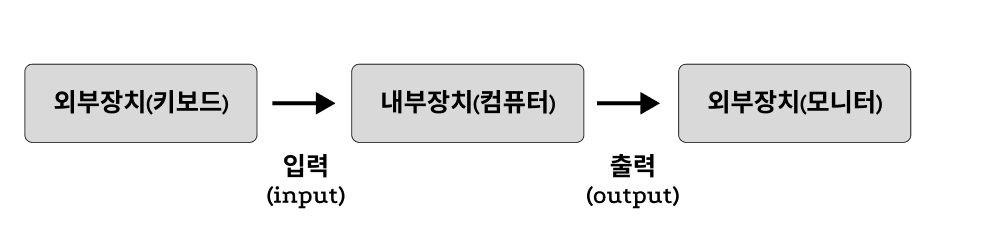 - 입출력(I/O)이란 컴퓨터 시스템이 컴퓨터 외부의 입출력 장치들과 데이터를 주고 받는 것을 의미