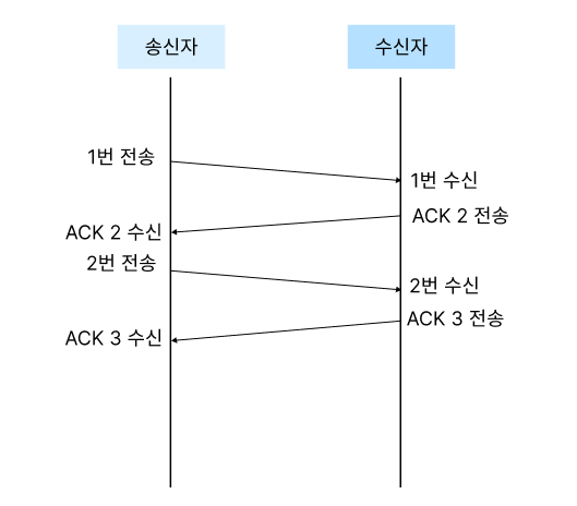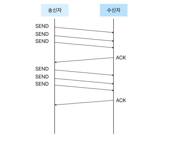 - 그래서 많은 패킷을 한꺼번에 보내고 응답을 하나만 받음