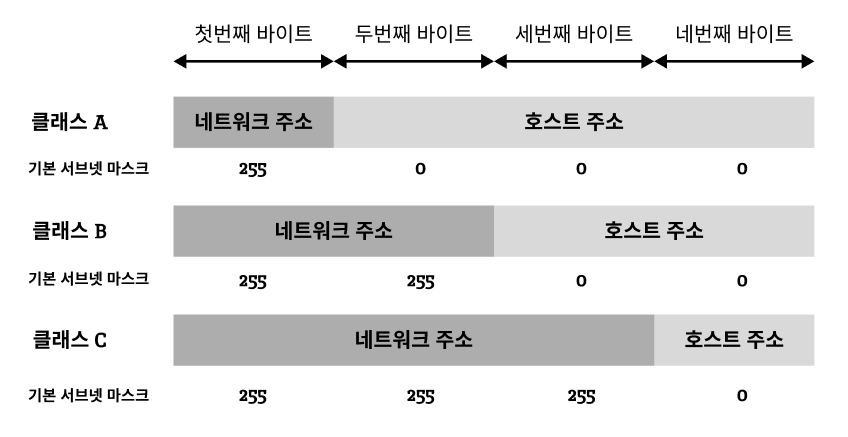 - 그리고 첫번째 바이트에 있는 맨왼쪽 비트로 클래스를 구분하는데 이를 구분 비트라 한다.