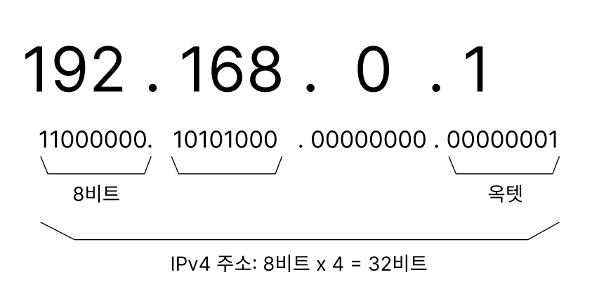 - IPv4의 경우 32비트, IPv6는 128비트이다.