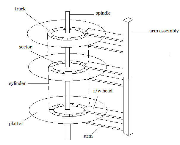 - 실린더(cylinder): 여러 개의 원판에서 상대적 위치가 동일한 트랙들의 집합