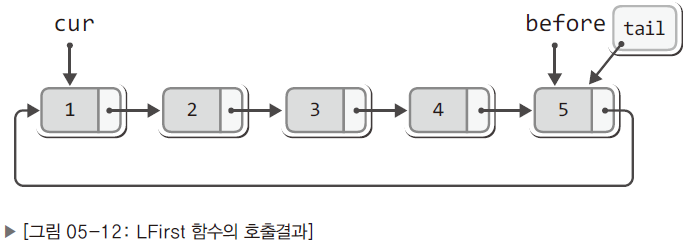- LFirst와 LNext는 단방향 연결 리스트와 차이가 없음