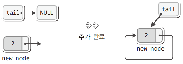 newNode->next = newNode; // 새 노드 자신을 가리키게 함