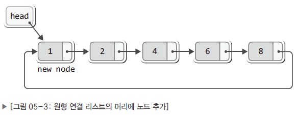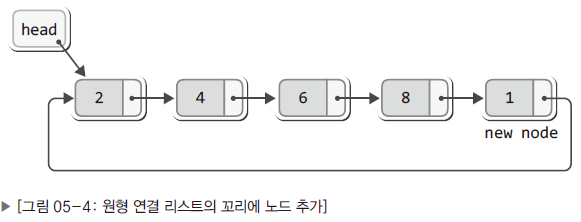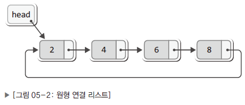 - 마지막 노드가 첫번째 노드를 가리키게 하면 이것이 원형 연결 리스트가 됨