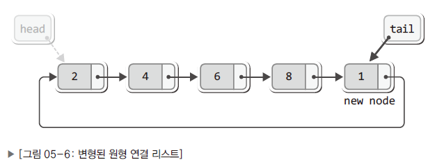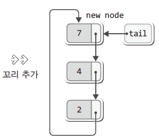 - 기존의 포인터 변수가 머리를 가리키는 방식에서 꼬리를 가리키게 변경