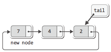 newNode->next = plist->tail->next; // 새 노드와 4가 저장된 노드 연결