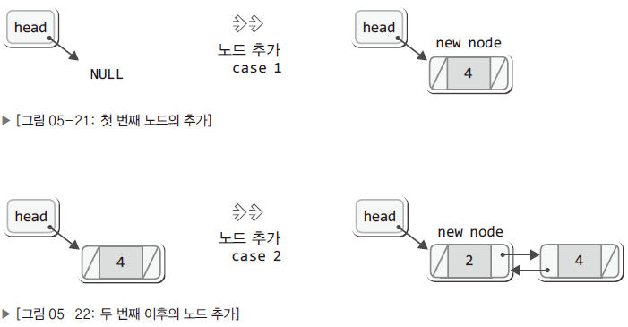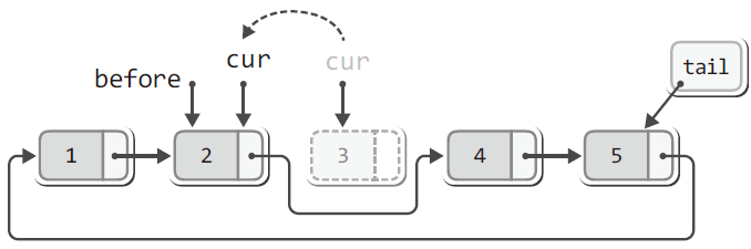 - 구조체의 멤버 cur과 before의 역할은 단순 연결 리스트와 동일