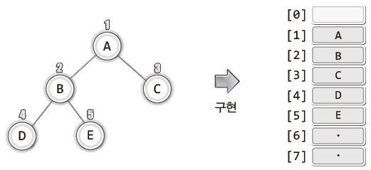 - 의외로 힙은 배열을 기반으로 구현해야 함.