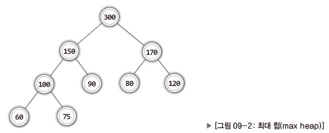 - 그리고 모든 노드에 저장된 값은 자식 노드에 저장된 값보다 크거나 같아야 함.