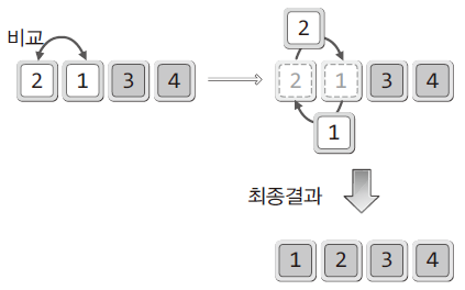 - 버블 정렬은 두 개의 데이터를 비교해가면서 정렬을 진행하는 방식