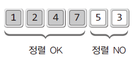 - 위 그림의 배열은 정렬이 완료된 부분과 완료되지 않은 부분으로 나뉨
