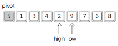 - high: 피벗을 제외한 가장 오른쪽에 위치한 지점