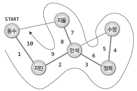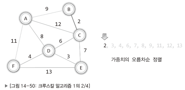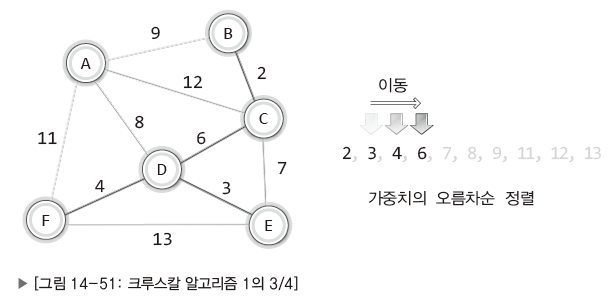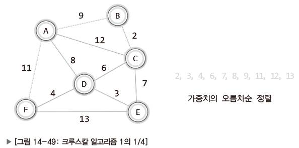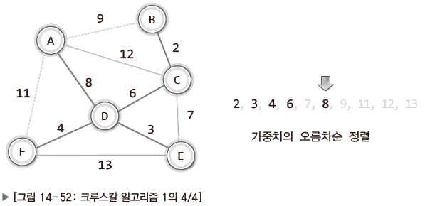- 이 때의 크루스칼 알고리즘 핵심은 다음과 같다.
