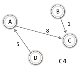 V(G1) = {A, B, C, D}, E(G1) = {(A,B), (A,C), (A,D), (B,C), (C,D)}V(G2) = {A, B, C, D}, E(G2) = {(A,C), (A,D), (B,C)}V(G3) = {A, B, C, D}, E(G3) = {<A,B>, <A,C>, <D,A>}V(G4) = {A, B, C, D}, E(G4) = {<A,C>, <B,C>, <D,A>}