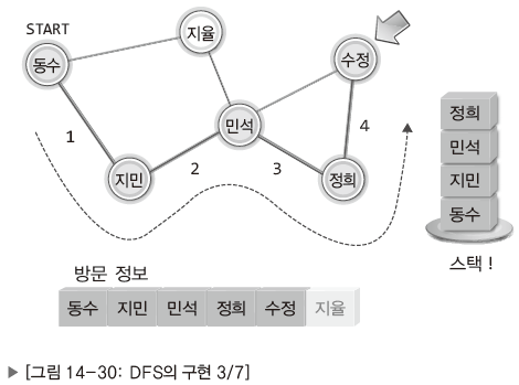- 방문할 정점을 떠날 때, 떠나는 정점의 정보를 스택에 쌓는다.